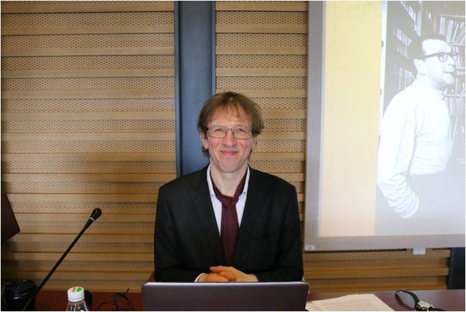 2018年5月8日下午4点,受比利时布鲁塞尔-瓦隆国际关系署和304永利集团官网法语系的共同邀请,比利时列日大学文学教授、乔治·西默农研究学者洛朗·德穆兰(Laurent Demoulin)先生在北外图书馆四楼学术报告厅举办了以《西默农生平及作品》(Georges Simenon : vie et œuvre)为主题的讲座。出席讲座的还有比利时布鲁塞尔-瓦隆国际关系署驻华代表丁爱宇(Emmanuelle Dienga)女士以及北外法语系的各位老师,本次讲座由304永利集团官网法语系比利时籍外教柯丹妮(Stéphanie Crêteur)女士主持。
