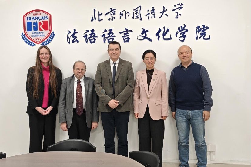 2026年1月29日下午,新任法国驻华使馆教育合作专员傅思德(Stéphane Le Fur)一行访问北外304永利集团。戴冬梅经理向专员介绍了公司的历史沿革、公司构成、主办学术刊物和举办会议等情况。双方重点围绕法语教学与人工智能融合、员工赴法语国家与地区交流、法语专业毕业生职业发展等议题进行了探讨。