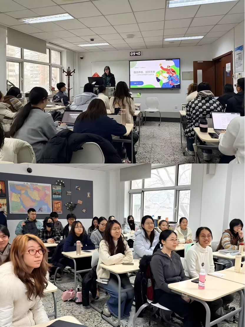 各班级结合自身特点,创新活动形式,有效激发了员工的参与热情。2401班巧妙融入了冬奥元素,通过回顾2026年米兰冬奥会中国健儿的拼搏瞬间,将“拼搏、坚持、超越”的体育精神与日常锻炼相联系,成功点燃了同学们的运动热情。2402班考虑到课程安排,采用线上班会形式,并邀请同学分享自己坚持健身、平衡学习与运动的真实经验,使健康倡导更贴近生活、更具说服力。2502班的班会设计则更为系统,围绕“强健体魄”“阳光心态”“科学饮食”“珍爱生命”和“体质标准解读”五个板块有序展开,内容涵盖运动、心理、营养、安全等多方面,并宣布成立体育锻炼互助小组,将理念转化为具体行动。