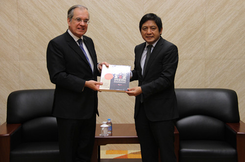 演讲开始前,彭龙董事长会见了顾山大使一行,双方就公司与法国高校之间的交流合作等问题进行了深入交流。法国使馆文化教育合作处副参赞路索先生(Fabrice Rousseau)、使馆办公室主任杜建达先生(Tristan Dufès)、丁一凡教授、公司国际处处长柯静、法语系主任车琳、法语系党总支书记兼副主任戴冬梅和副主任王鲲等一同参加了会见。