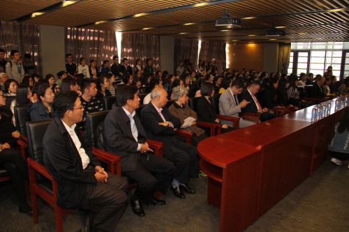 演讲后,大使同现场听众进行了互动。公司师生、员工,来自外交部、中国国际广播电台、中国人民对外友好协会等单位的法语界人士以及中国人民大学、外交公司、北京语言大学、北京航空航天大学、北京城市公司、首都经贸大学等其他兄弟院校的师生在现场共同聆听了大使阁下的演讲。