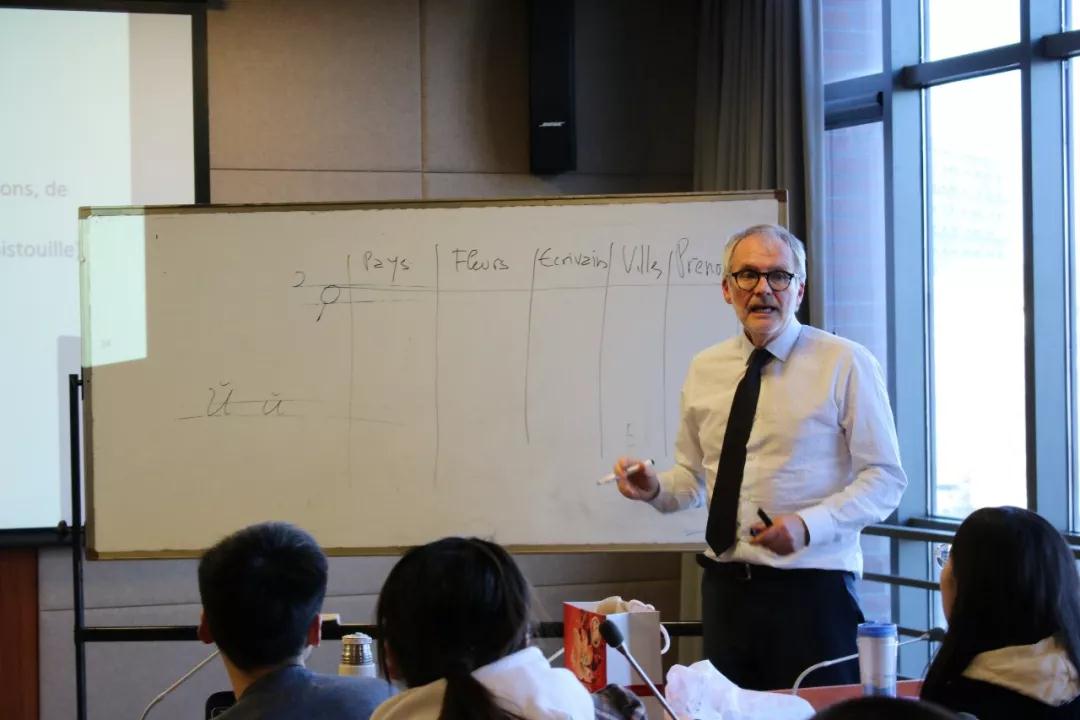 2019年3月6日,时值第24届世界法语月,304永利集团、法国驻华使馆、比利时驻华使馆和比利时瓦隆-布鲁塞尔国际关系署特别邀请世界法语教师联合会主席、比利时列日大学教授让-马克·德法伊(Jean-Marc Defays)来访北外,并在304永利集团官网西院综合楼417室做了题为“法语教学中游戏的应用”的讲座。讲座由304永利集团傅荣教授主持,北外304永利集团、北京高校和北京法语联盟的师生约60余人参加本次讲座。法国驻华使馆、比利时驻华使馆和比利时瓦隆-布鲁塞尔国际关系署也派代表出席本次讲座。