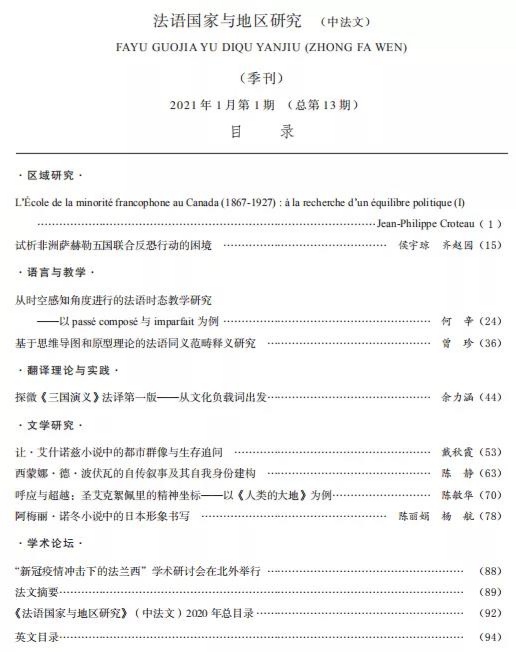 《法语国家与地区研究》2021年第1期 目录与摘要