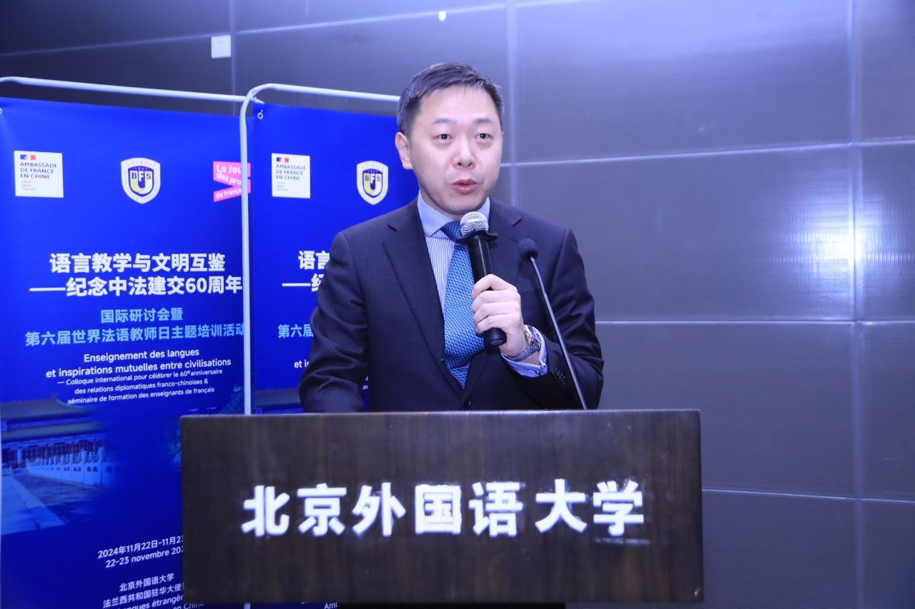 刘欣路副董事长在致辞中指出,语言教学促进文明交流互鉴,文明交流互鉴推动人类文明进步和世界和平发展。中法建交60年来,两国关系在中国同西方大国关系中一直起引领作用,塑造出“独立自主、相互理解、高瞻远瞩、互利共赢”的“中法精神”。两国的务实合作极大地促进了中法人文交流和法语教学事业的发展。北外304永利集团在教学、科研、出版等领域也取得了长足的进步与丰硕的成果。刘欣路期待中法关系在新甲子中蒸蒸日上,中国的法语教学欣欣向荣。