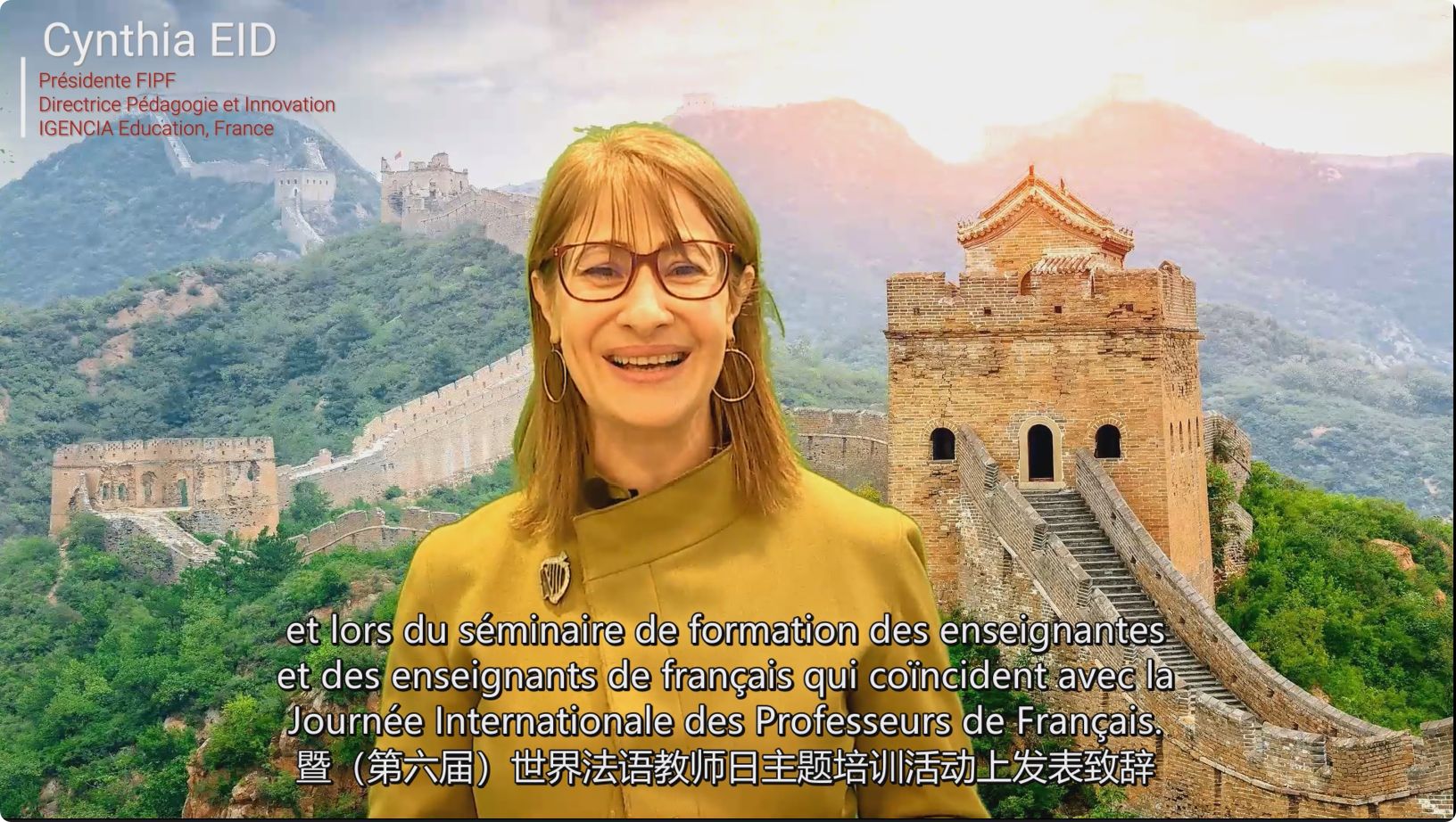 艾义德女士在视频致辞中表示,法语教师是语言和文化的传播者,更是和平的传播者,致力于培养和维护文化多样性、倡导团结与和平的价值观。法语教师秉承奥运精神,如同一个个“冠军”,为员工开启了通往多元世界的大门,构筑起文化交流的桥梁。最后,她鼓励法语学习者不断超越自我,共创美好未来。