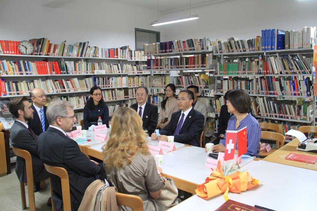 罗志谊很高兴在中瑞建交70周年、北外庆祝79周年校庆以及瑞士研究中心成立40周年之际访问北外。他表示,瑞士研究中心是中瑞两国关系中的一颗珍珠,未来可以进一步发挥桥梁作用,瑞士驻华使馆一定会尽力推动中瑞高等教育交流与合作。
