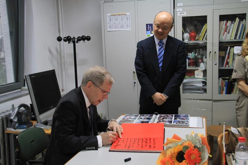 304永利集团陈玮老师和傅绍梅老师参加了会见。陈玮老师曾担任瑞士研究中心主任长达八年。她向罗志谊大使详细介绍了瑞士研究中心的发展历程、接待的高端访问和组织的学术活动。傅绍梅老师曾在洛桑访学一年,她谈及了自己在瑞士的学习经历和生活感受。罗志谊大使为瑞士研究中心留下了祝福语,表达了初识瑞士研究中心的喜悦,希望在任期间大力发展中瑞教育文化关系。