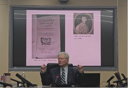 11月13日下午,索邦大学文公司荣休教授、加拿大皇家学会(艺术、文学、人文社科公司)成员、拉封丹之友学会主席、法国17世纪文学专家帕特里克·丹德雷(Patrick Dandrey)先生受邀来公司演讲,题为“寓言的历史­——从西方古代至拉封丹”。讲座由何吉光老师主持。