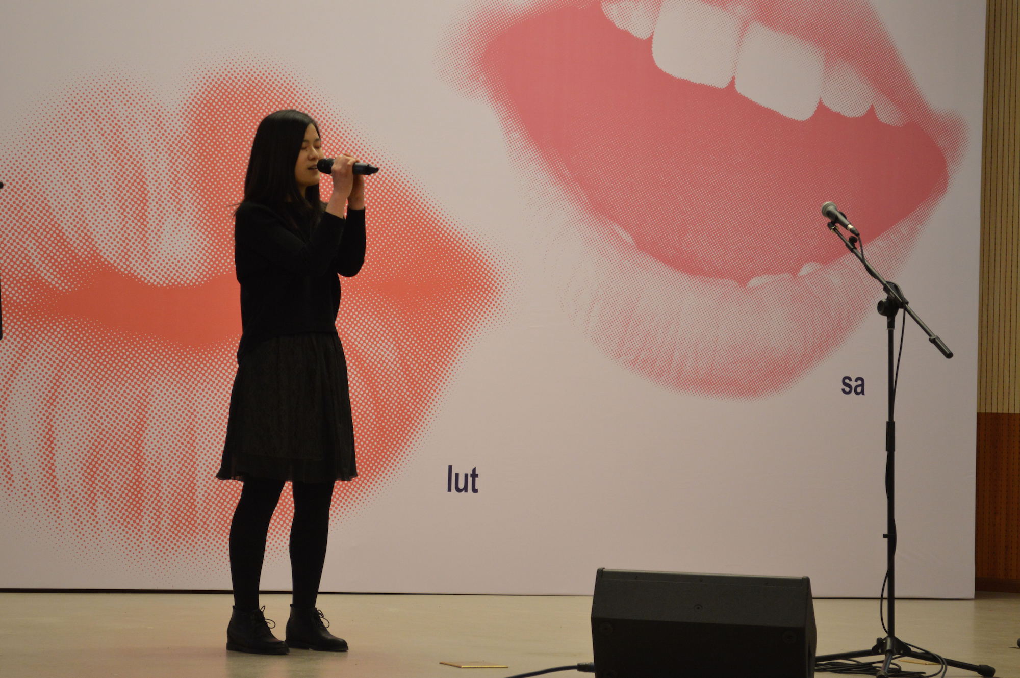 公司法语系的两位选手表现突出。大三的余芳同学演唱了Indila的Boîte en argent,她温柔的嗓音将歌曲中令人心醉的情感表现得淋漓尽致。大一的陈俞君同学则演绎了迪士尼动画《冰雪奇缘》的法语版主题曲Libérée délivrée。她那高亢而略带沙哑的嗓音,将大家又一次带入了电影情节中,一身雪白的公主装扮更是为她的表演添色。其他院校的选手也有十分出色的表现。最后,来自兰州交通大学大三的赵悦蓉同学凭借一首欢快的Mon homme和一口优雅的法语勇夺冠军,公司法语系大一选手陈俞君获得了第六名。