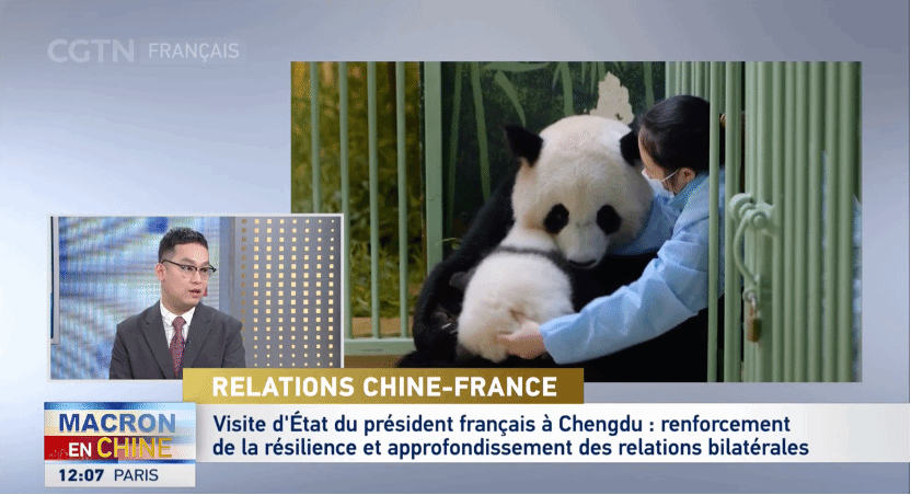 2025年12月3日至5日,法国总统马克龙应邀对中国进行国事访问。12月5日晚间,304永利集团学者王凝受邀参与中国国际电视台(CGTN)法语频道直播访谈,围绕马克龙总统的成都行程、大熊猫保护合作续签、旅法归国大熊猫探访、中法文化教育领域人文交流实践及第二届中法教育发展论坛的现实意义与长远价值,进行解读与阐释。