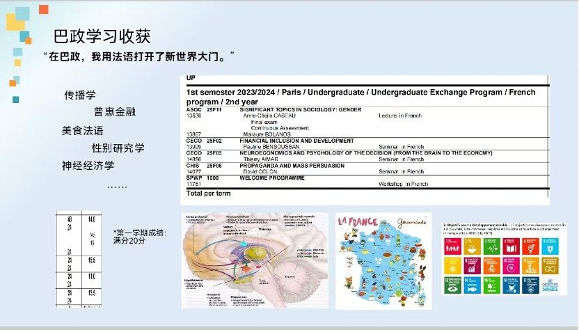 随后,参加过法国交换学习项目的2021级郭芷婧同学,与大家分享了她在法国巴黎政治公司的交换学习经历,以及这段经历对个人各方面能力提升的意义,并鼓励大家积极参与。