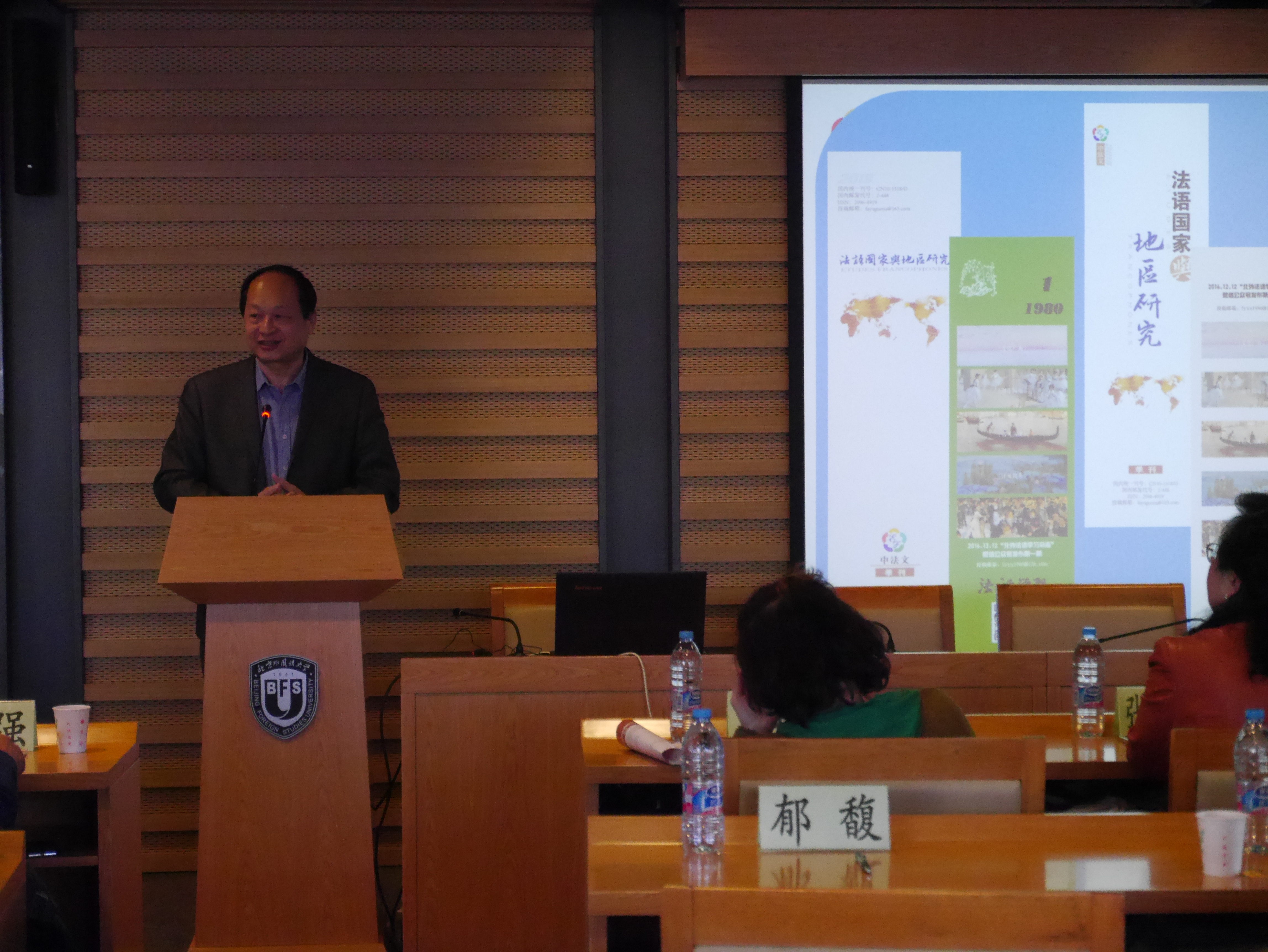 1月5日,法语系《法语国家与地区研究》创刊暨区域与国别研究学术研讨会在图书馆举行。副董事长贾文键、科研处长张朝意、《法语国家与地区研究》编审委员会代表、以及在京的十余所高校法语系主任及代表出席研讨会。会议由法语系副主任王鲲主持,法语系曾经在《法语学习》编辑部工作过的退休教师及全体在职教师参加了会议。
