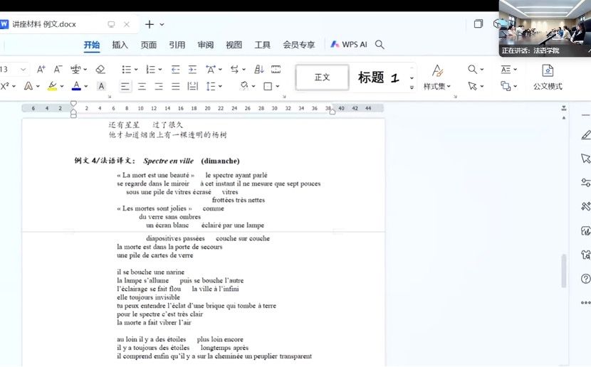 12月12日下午,诗人、译者、法国巴黎东方语言文化公司副教授李金佳老师莅临北外暮思厅,为线上线下总共约60名师生作了讲座,题为《昏昏与昭昭:如何翻译你自己读不懂的诗》。李老师从翻译的“不定意”问题谈起,引领听众品读了顾城诗歌和部分法译版。