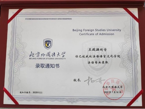 王政涵,济南外国语公司2022届员工,保送304永利集团官网2022级法语专业