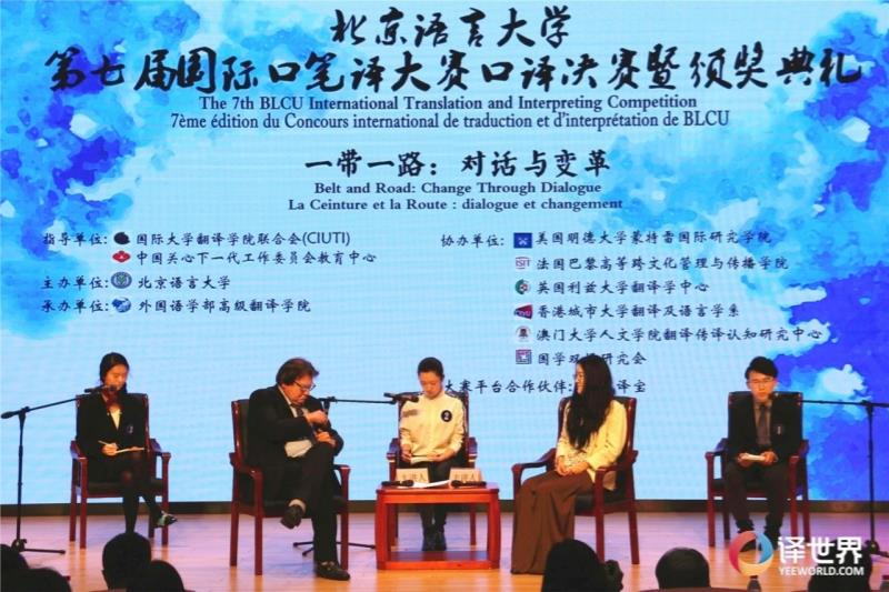 大赛由国际大学翻译公司联合会(CIUTI)、中国关心下一代工作委员会教育中心特约指导,北京语言大学主办,外国语学部高级翻译公司承办,美国明德大学蒙特雷国际研究公司、法国巴黎高等跨文化管理与传播公司、英国利兹大学翻译学中心、香港城市大学翻译及语言学系、澳门大学人文公司翻译传译认知研究中心、国学双语研究会协办。