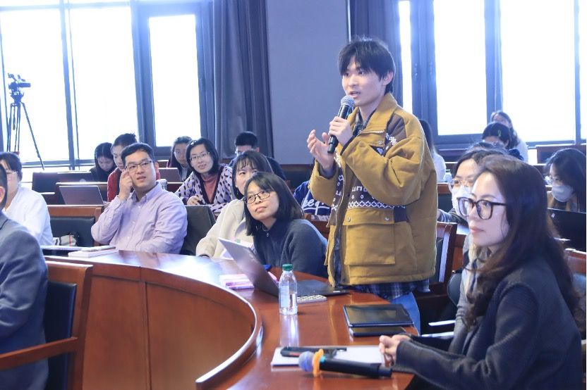 交流互动环节,法语师生们围绕语言学习、文学价值、人生选择等话题踊跃提问,郑欣结合自身经历细致解答,寄语同学们珍惜学习时光,筑牢母语与外语双重根基,保持好奇与热爱,在广阔天地中勇敢前行。